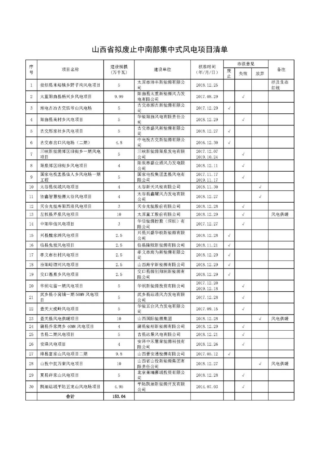 | 山西省擬再?gòu)U止30個(gè)風(fēng)電項(xiàng)目!總計(jì)規(guī)模153.04萬(wàn)千瓦 |