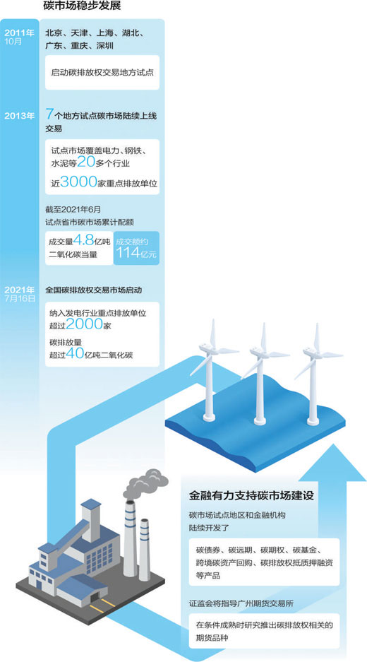 9點30分正式開市,10分鐘后,累計成交金額超過2000萬元。全天4個小時的交易,成交量410萬噸,收盤價單日漲幅6.7%。這是7月16日全國碳排放權交易市場啟動后的火熱交易景象。 建設全國碳排放權交易市場,是利用市場機制控制和減少溫室氣體排放、推動綠色低碳發(fā)展的一項重大制度創(chuàng)新,是實現(xiàn)碳達峰、碳中和的重要政策工具。從地方試點起步,到全國市場啟動,10年間,經(jīng)驗不斷積累、制度逐步完善。碳市場是如何運行的?碳價格是怎樣形成的?金融業(yè)又將在其中發(fā)揮什么作用?記者采訪了相關企業(yè)、交易所和專家。 “無形之手”助減排 碳市場能以最低成本、最高效率實現(xiàn)碳減排,充分發(fā)揮價格發(fā)現(xiàn)作用 在全國碳市場啟動前,地方碳市場試點工作已開展了10年,推動了不少企業(yè)的綠色轉型。 “當時公司以每噸60元的價格購買了約25萬噸碳配額。”2014年的首次碳交易讓廣州恒運企業(yè)集團股份有限公司副總經(jīng)理周水良記憶猶新。廣東是首批開展碳排放權交易試點的省份之一,作為重點電力生產企業(yè),廣州恒運于2014年被納入碳排放管理,當時由于碳配額不足,企業(yè)購買了約1500萬元碳配額履約。 隨著試點交易的深入進行,廣州恒運逐步認識到減排不只是壓力,碳資產管理、減碳技術應用也能帶來經(jīng)濟效益。于是,公司成立了專門的節(jié)能減碳專班,升級改造發(fā)電機組,大力發(fā)展天然氣發(fā)電等低碳的清潔能源項目……一系列改造升級讓廣州恒運實現(xiàn)從花錢購買碳配額到出售碳資產獲利的轉變。2020年,企業(yè)通過出售碳資產獲利3000多萬元。 像廣州恒運一樣,不少控排企業(yè)嘗到了碳市場帶來的甜頭?!霸絹碓蕉嗥髽I(yè)意識到,只有主動減排,才能在綠色低碳轉型的大潮中占得有利先機?!睆V州碳排放權交易所總經(jīng)理孟萌介紹,在試點過程中廣東碳市場較為活躍,截至今年6月,碳排放權累計成交金額超過40億元,居全國首位。 “更重要的是,碳市場切實推動產生了良好的減排效果,通過碳排放總量控制、指標分配和履約機制,廣東碳市場整體實現(xiàn)絕對量減排,2019年減排量達4374萬噸,減排幅度達11.4%。”孟萌認為,不論是國外實踐還是國內試點都表明,碳市場是一個能夠以最低成本、最高效率實現(xiàn)減排的政策工具。 這一市場是如何運轉的?孟萌以廣東碳市場為例介紹碳市場的建設框架:首先設定碳市場覆蓋范圍,廣東確定覆蓋的行業(yè)是電力、水泥、鋼鐵、石化、造紙、民航六大行業(yè)中年排放二氧化碳2萬噸及以上的企業(yè);再設定配額總量,也就是降碳的目標任務;然后制定配額分配方案,采取基準線法,同行業(yè)的企業(yè)橫向比較,獎勵先進、懲戒落后,同時明確碳配額分配是否免費以及有償分配的比例。此外,還要建立碳排放報告核查體系和履約機制,監(jiān)管企業(yè)的碳排放量,明確未履約行為的懲罰規(guī)則,保證碳市場的約束力和公信力。 碳市場交易的產品是碳排放權。像廣州恒運那樣,獲得一定碳排放配額的控排企業(yè),超額排放需在碳市場上購買配額,成功減排則可出售富余配額。全國碳市場上線后,首批納入的2000多家電力行業(yè)重點排放單位可以在全國碳排放權交易系統(tǒng)中通過協(xié)議轉讓、單向競價或其他符合規(guī)定的方式交易。 碳市場如何發(fā)揮低成本、高效率的減排作用?在北京綠色交易所總經(jīng)理梅德文看來,碳市場同其他市場一樣,通過價格信號來引導碳排放權資源的優(yōu)化配置,以“無形之手”推動降低全社會減排成本,促進綠色低碳產業(yè)投資。 “要充分發(fā)揮碳市場的價格發(fā)現(xiàn)作用,只有推動形成合理碳價,才能讓碳市場起到高效約束碳排放和激勵節(jié)碳的作用?!泵返挛恼J為,碳價過低,企業(yè)沒有減排積極性;碳價過高則會導致一些高碳企業(yè)負擔過重,也不利于企業(yè)轉型發(fā)展。 從7個地方試點的運行情況看,近兩年加權平均碳價約在每噸40元左右。梅德文認為,雖然試點地區(qū)進行了有益探索,但由于市場規(guī)模有限,還未形成真實反映碳排放綜合社會成本的碳價。發(fā)現(xiàn)合理有效的碳價,是全國碳市場建設的重要目標任務。 豐富碳金融衍生品 碳排放權期貨市場建設將與現(xiàn)貨市場相互促進、共同發(fā)展 如何更好地通過碳市場形成碳價格,最大化發(fā)揮碳價格的激勵約束作用?專家認為,國際經(jīng)驗表明,由于碳交易具有較強的金融屬性,應引入碳期貨等金融衍生品交易機制,以更好地發(fā)現(xiàn)價格和進行風險管理。 “只有多元的金融機構、金融產品加入進來,碳市場才能更為活躍,碳定價才能更有效率?!泵返挛恼J為,多元化的市場主體風險偏好、預期、信息來源不同,這樣才能形成相對公允的價格,有助于形成有效的市場定價機制。 平安證券首席策略分析師魏偉也認為,沒有金融機構的參與,碳市場在價格發(fā)現(xiàn)、引導預期、風險管理等方面的作用將大打折扣。魏偉舉例說,歐盟的碳交易市場發(fā)展得相對比較成熟,很大程度上得益于在市場建立初期便發(fā)展出碳配額的期貨、期權、掉期等多種金融工具,且商業(yè)銀行、投資銀行、私募基金等各類參與主體眾多,極大提升了碳交易的活躍度。 日前,我國碳金融市場有好消息傳來。證監(jiān)會新聞