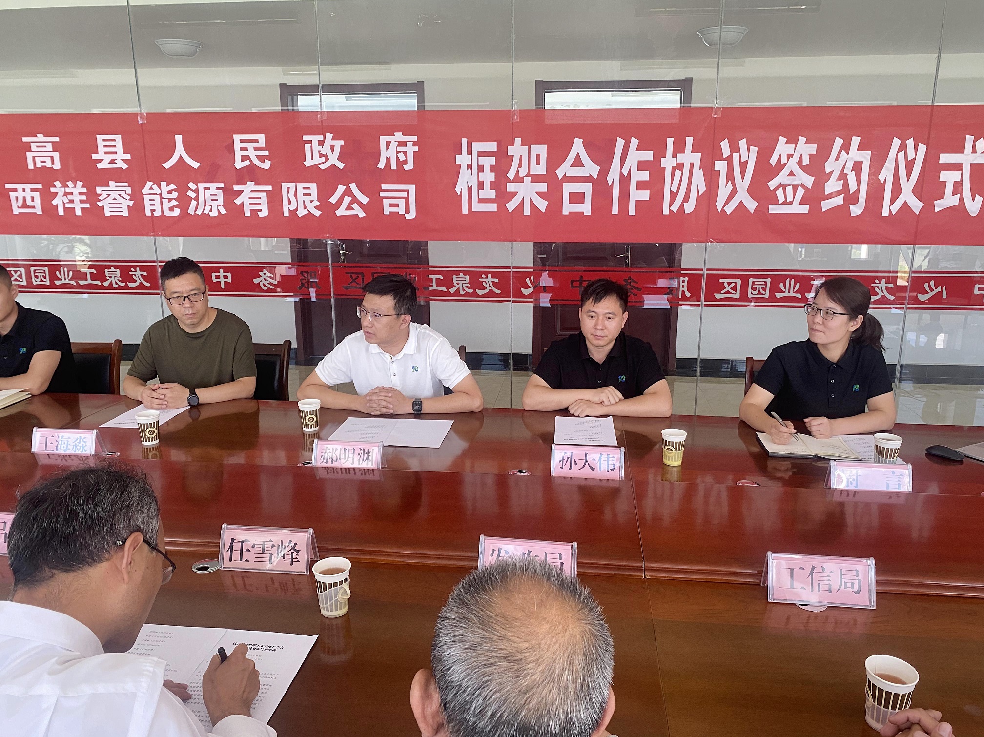 8月26日,“陽高縣人民政府·山西祥睿能源有限公司框架合作協(xié)議”簽約儀式在陽高龍泉工業(yè)區(qū)順利舉行。陽高縣副縣長任雪峰、龍泉工業(yè)園區(qū)管委會主任呂福軍、祥睿能源執(zhí)行總裁郝明淵、智慧工業(yè)BU總經(jīng)理尉言、總工孫大偉等出席簽約儀式。