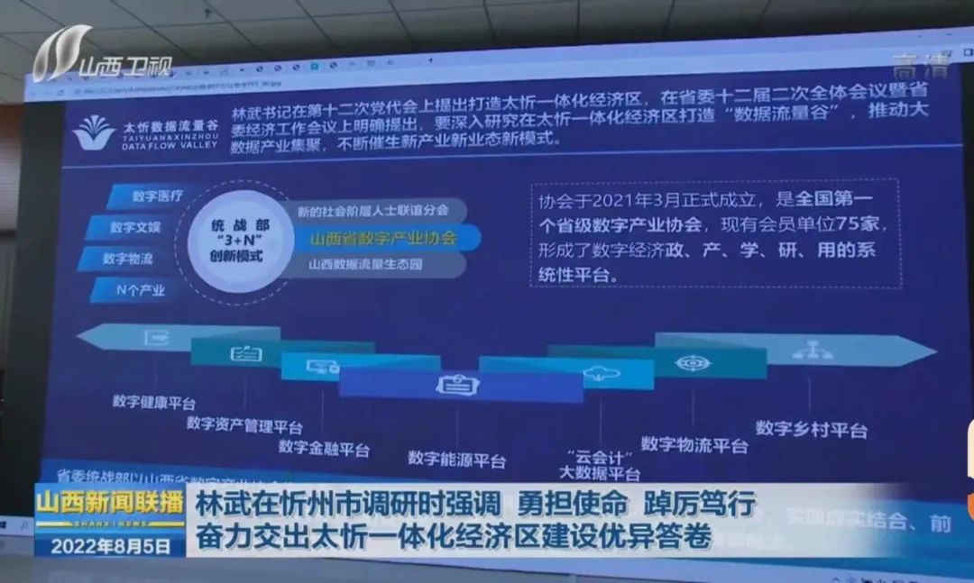 8月3日,林武首先來到太忻數(shù)據(jù)流量谷,聽取規(guī)劃建設(shè)、平臺服務(wù)、招商引資等情況介紹,與華為、百度、時光軸、祥睿能源等入園企業(yè)項目負責人交流。省工商聯(lián)副主席、祥睿能源董事長王正通代表山西數(shù)字產(chǎn)業(yè)協(xié)會,就太忻數(shù)據(jù)流量谷三大建設(shè)思路向林武書記進行了匯報:一是迅速匯集,打造“7+N”數(shù)據(jù)平臺和數(shù)據(jù)產(chǎn)業(yè)鏈體系;二是虛實結(jié)合,通過數(shù)字化、綠色化產(chǎn)業(yè)平臺帶動高端裝備制造業(yè)形成前輕后重的太忻模式;三是通過數(shù)據(jù)流量谷形成賦能山西傳統(tǒng)產(chǎn)業(yè)轉(zhuǎn)型的生態(tài)體系。