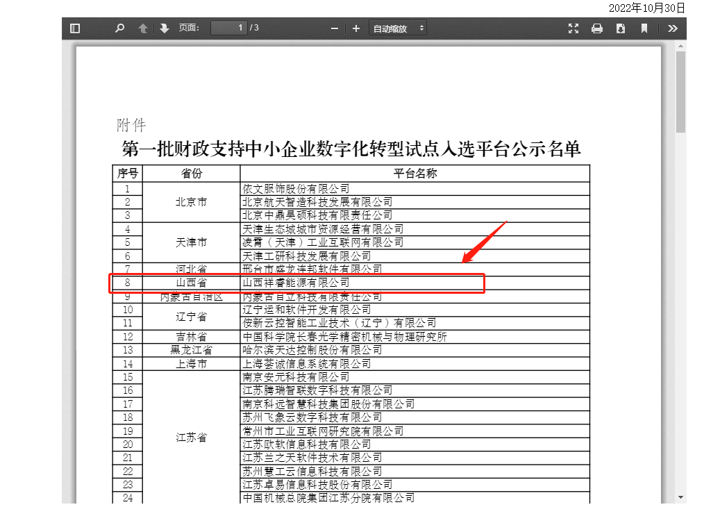 近日,工業(yè)和信息化部公示了第一批財(cái)政支持中小企業(yè)數(shù)字化轉(zhuǎn)型試點(diǎn)入選平臺(tái)名單,山西祥睿能源有限公司名列其中,是山西省唯一一家入選企業(yè)。