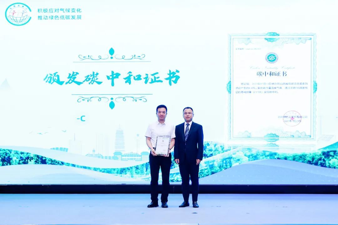 氣候投融資試點(diǎn)合作簽約儀式北京綠色交易所為本次活動頒發(fā)碳中和證書