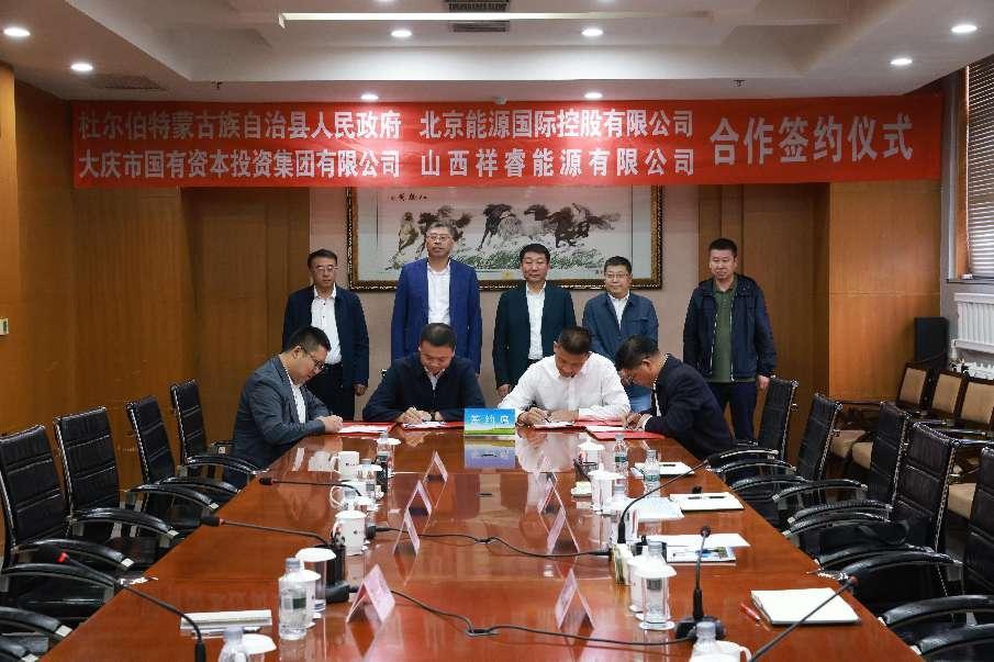 9月28日上午,祥睿能源簽約黑龍江省杜爾伯特蒙古族自治縣人民政府,與北京能源國(guó)際控股有限公司、大慶市國(guó)有資本投資集團(tuán)有限公司共同合作風(fēng)光制氫制航油項(xiàng)目。這個(gè)項(xiàng)目的簽約,標(biāo)志著祥睿能源由綠色數(shù)字、綠色運(yùn)營(yíng)升級(jí)到綠色科技生態(tài)體構(gòu)建和運(yùn)營(yíng)體系的實(shí)現(xiàn)。杜爾伯特蒙古族自治縣縣委書記張劍、黑龍江省大慶市商務(wù)局局長(zhǎng)董輝、杜爾伯特蒙古族自治縣副縣長(zhǎng)田偉,大慶國(guó)投集團(tuán)黨委委員、副總經(jīng)理王世江,北京能源國(guó)際控股有限公司東北公司總經(jīng)理侯坤、總監(jiān)張紅喬,祥睿能源董事長(zhǎng)王正通及黑龍江祥睿總經(jīng)理?xiàng)钫疾?、副總?jīng)理李殿順等有關(guān)領(lǐng)導(dǎo)和人員出席簽約儀式。在簽約儀式上,杜蒙縣副縣長(zhǎng)田偉介紹了參會(huì)來賓并宣布“風(fēng)光制氫制航油項(xiàng)目簽約儀式”正式開始。