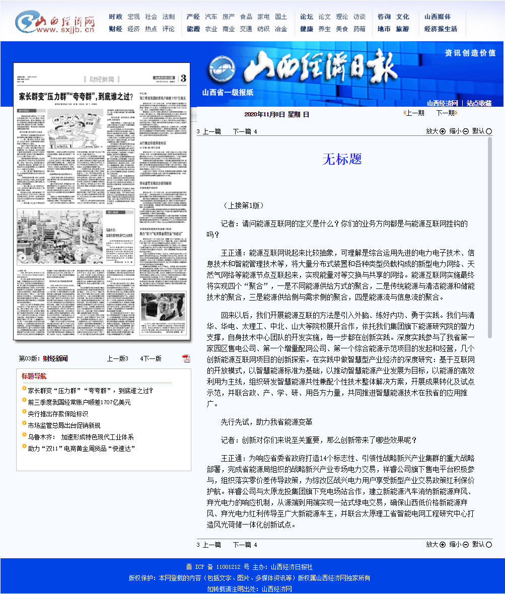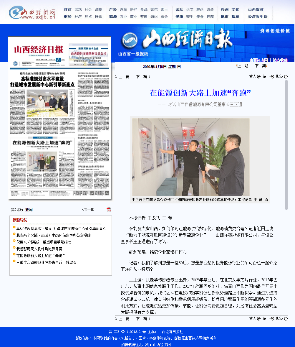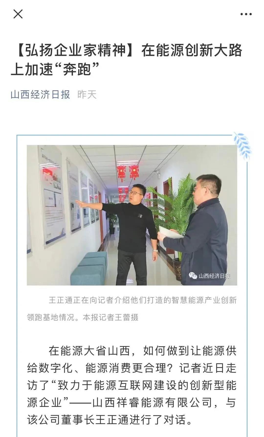 2020年11月8日《山西經濟日報》晉周刊專欄,就祥睿能源董事長王正通與記者的對話進行了專題報道,淺談如何弘揚企業(yè)家精神。 企業(yè)家是企業(yè)的統(tǒng)帥和靈魂,也是改革創(chuàng)新的重要力量。習近平總書記指出:“我們全面深化改革,就要激發(fā)市場蘊藏的活力。市場活力來自于人,特別是來自于企業(yè)家,來自于企業(yè)家精神。”作為企業(yè)家,要運用創(chuàng)新意識和創(chuàng)新能力,能注意到別人忽略的問題,想到他人沒有想或不敢想的問題,抓住時機,出奇制勝。無論是管理創(chuàng)新、產品創(chuàng)新、服務創(chuàng)新還是技術創(chuàng)新,本身就充滿著市場和技術的不確定性,需要企業(yè)家有膽識、有魄力,敢于擔當。面對經濟發(fā)展新常態(tài),更需要發(fā)揚企業(yè)家精神,以更大的決心、更大的勇氣參與市場競爭,引領企業(yè)激發(fā)創(chuàng)新改革活力。