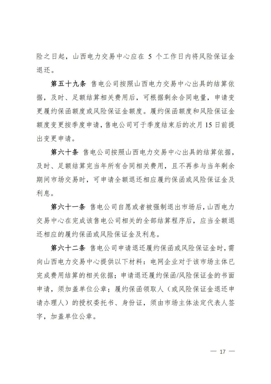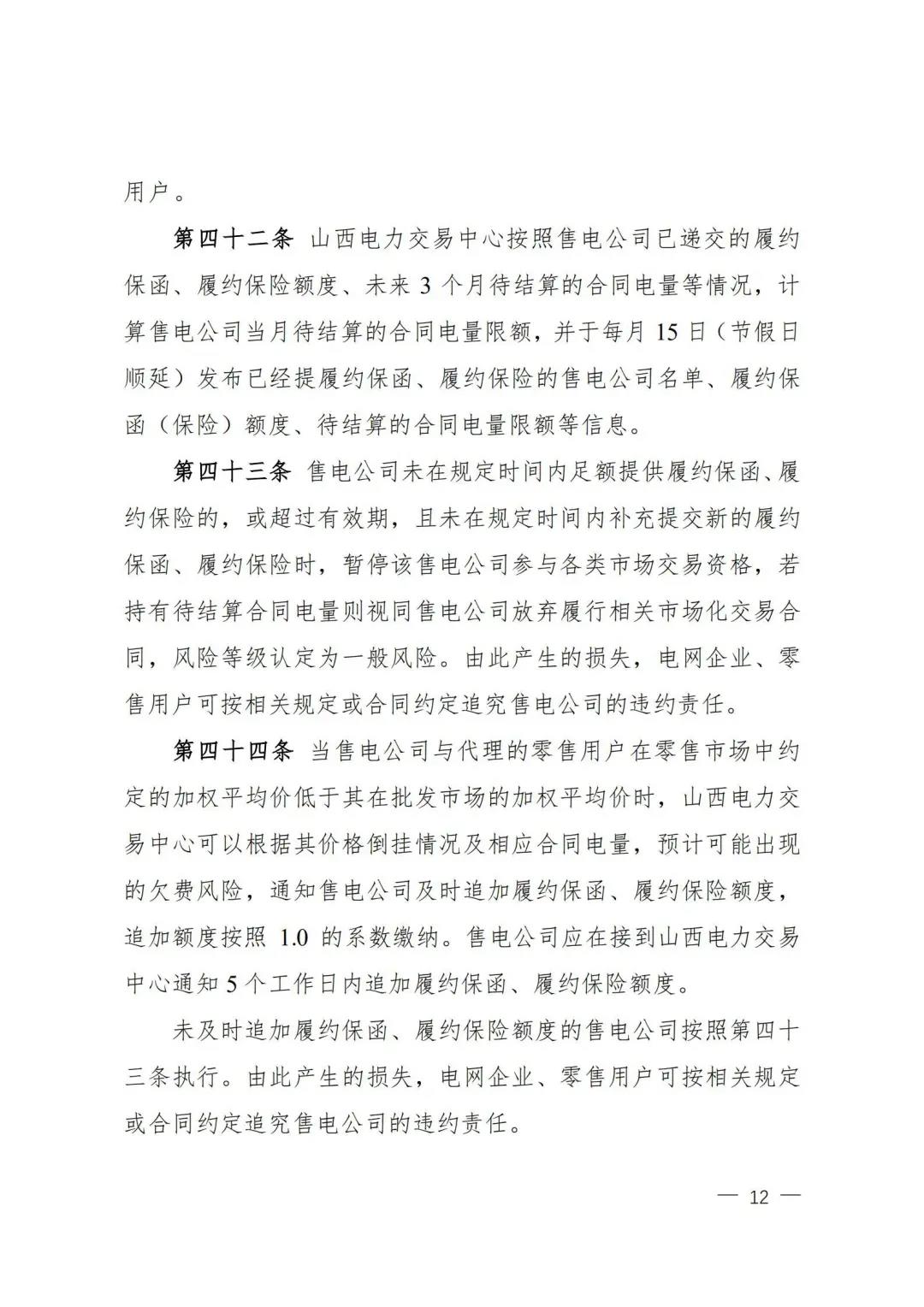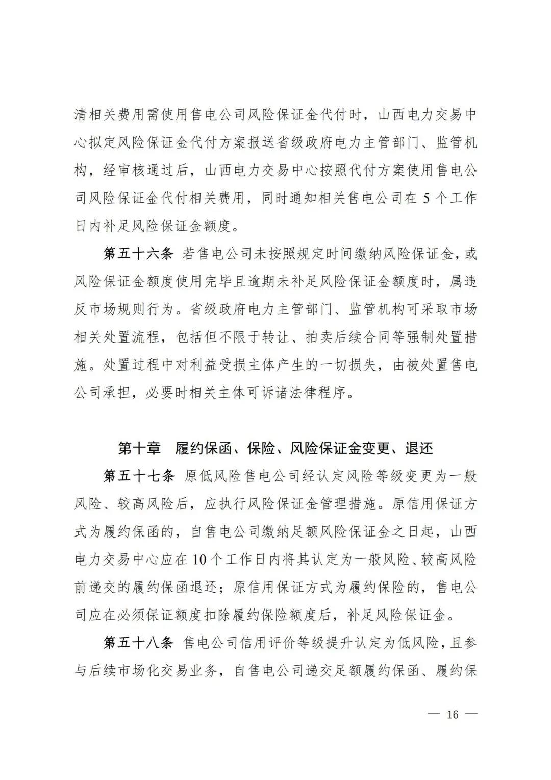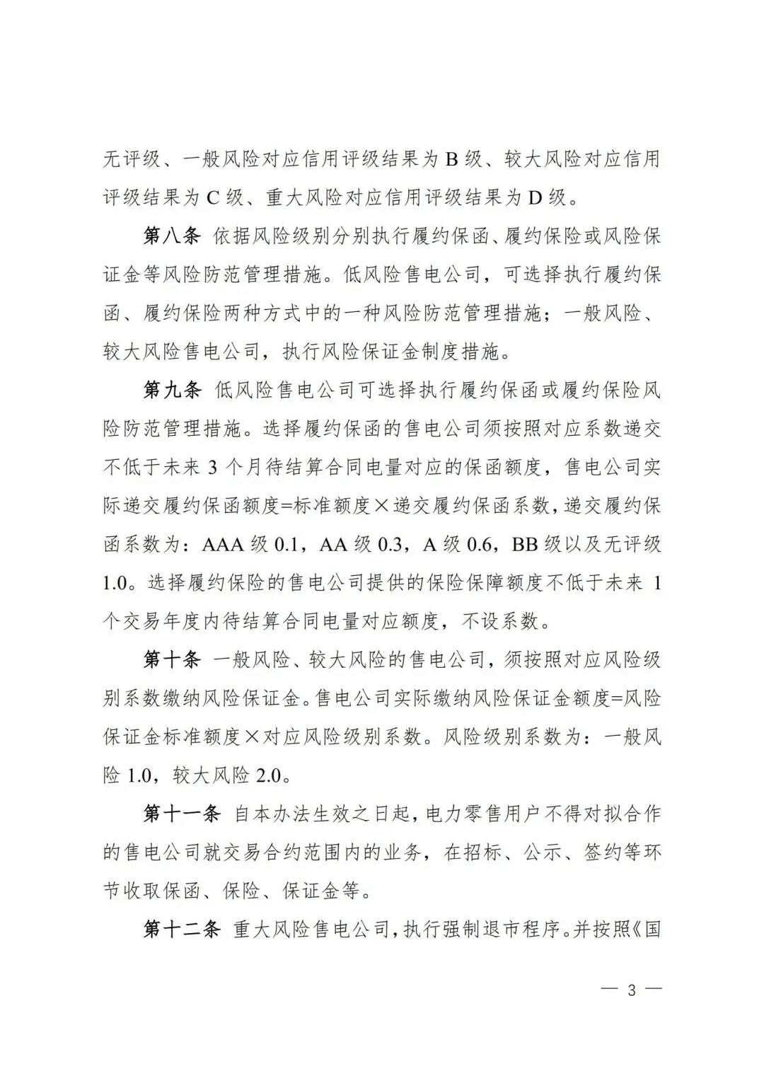 | 山西電力市場售電公司信用評價與風險防范管理辦法:依據(jù)風險級別執(zhí)行履約保函、保險或風險保證金措施 |
