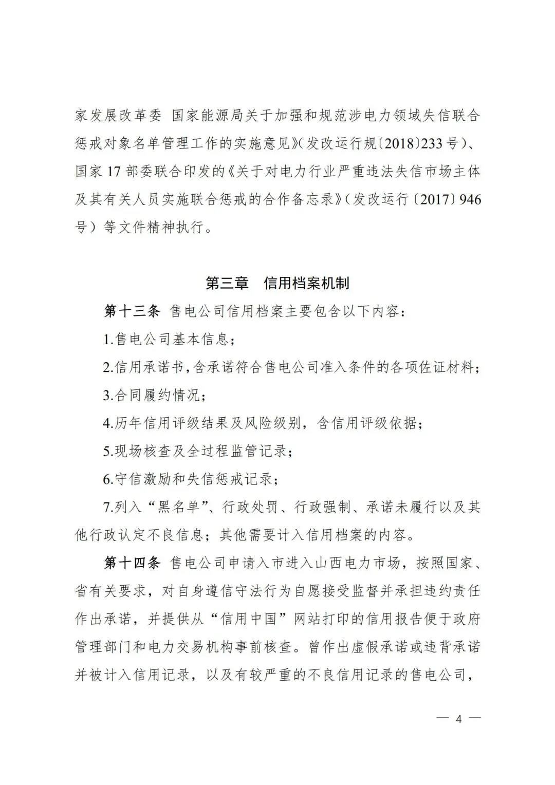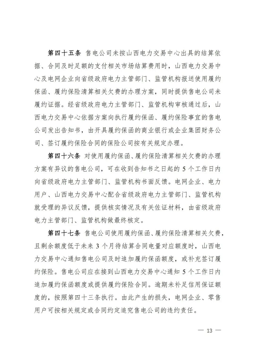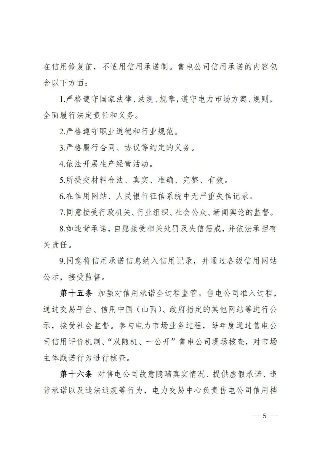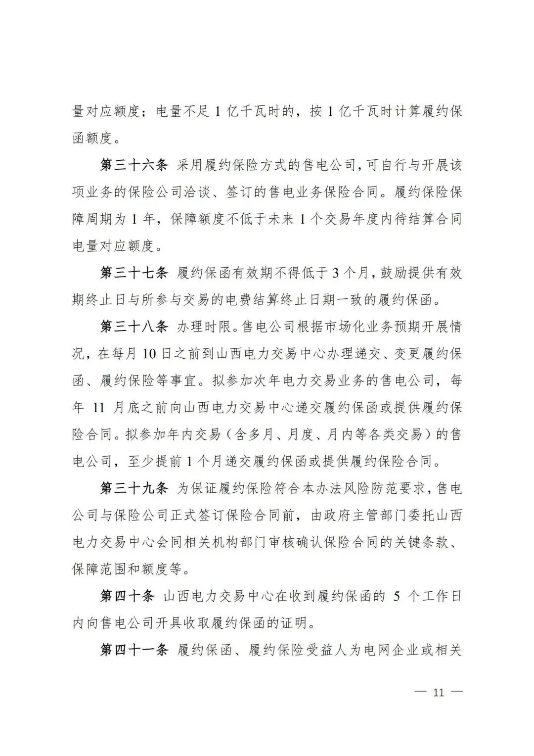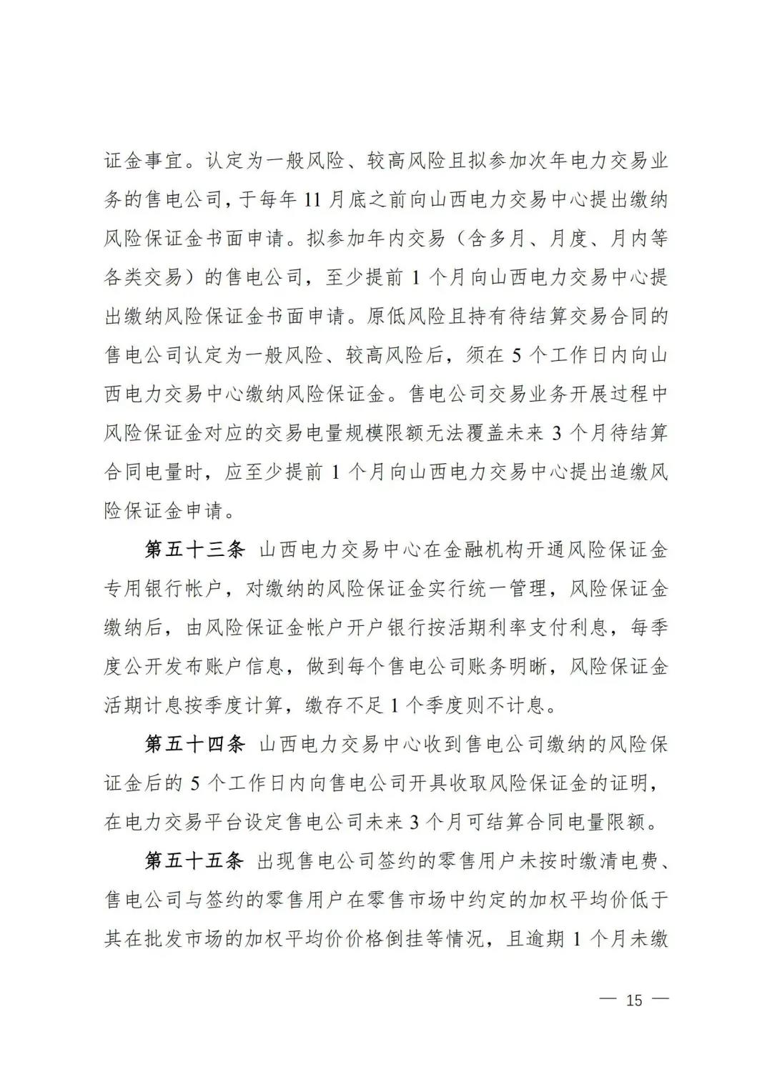 | 山西電力市場售電公司信用評價與風險防范管理辦法:依據(jù)風險級別執(zhí)行履約保函、保險或風險保證金措施 |