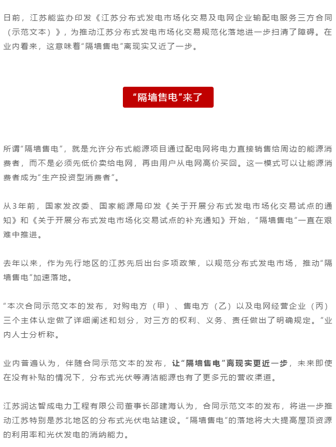 | “隔墻售電”江蘇版本,這些難題并非無解 |
