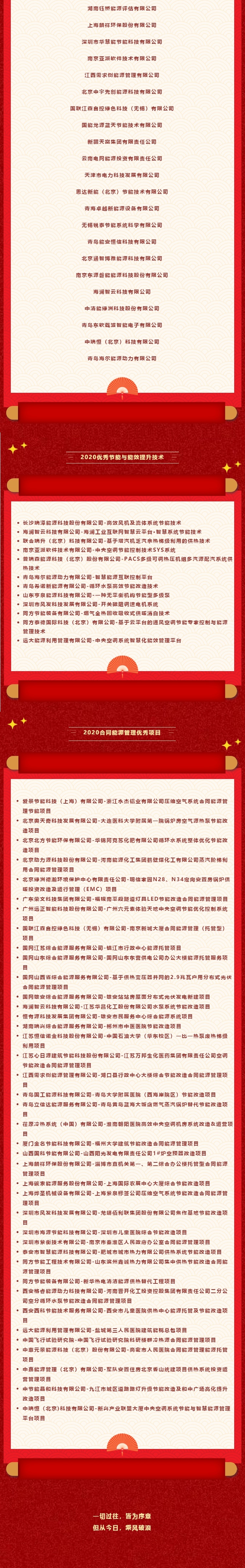 自2020年11月17日發(fā)出評優(yōu)通知至活動截止日期,共收到節(jié)能企業(yè)申報資料669份。根據(jù)《2020年度節(jié)能服務產(chǎn)業(yè)評優(yōu)活動管理暫行辦法》,經(jīng)自愿申報、專家評審、名單公示等環(huán)節(jié),決定對以下集體及個人授予榮譽稱號: