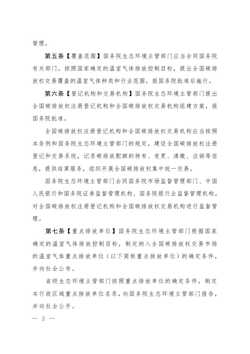 中華人民共和國生態(tài)環(huán)境部今日正式發(fā)布關(guān)于公開征求《碳排放權(quán)交易管理暫行條例(草案修改稿)》意見的通知,《草案修改稿》稱,該暫行條例施行后,不再建設地方碳排放權(quán)交易市場。暫行條例施行前已經(jīng)存在的地方碳排放權(quán)交易市場,應當逐步納入全國碳排放權(quán)交易市場。具體步驟和辦法由國務院生態(tài)環(huán)境主管部門制定。原文如下: